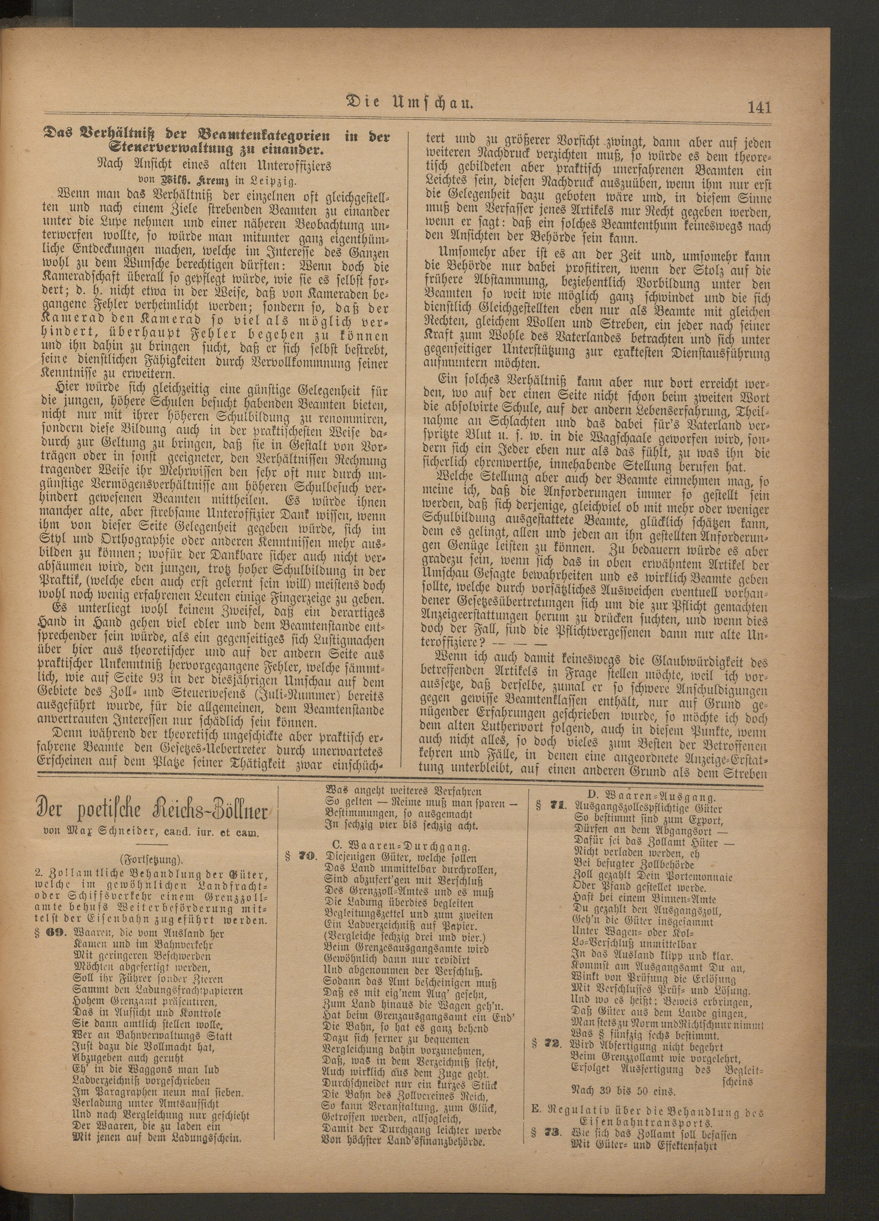 Die Umschau auf dem Gebiete des Zoll- und Steuerwesens