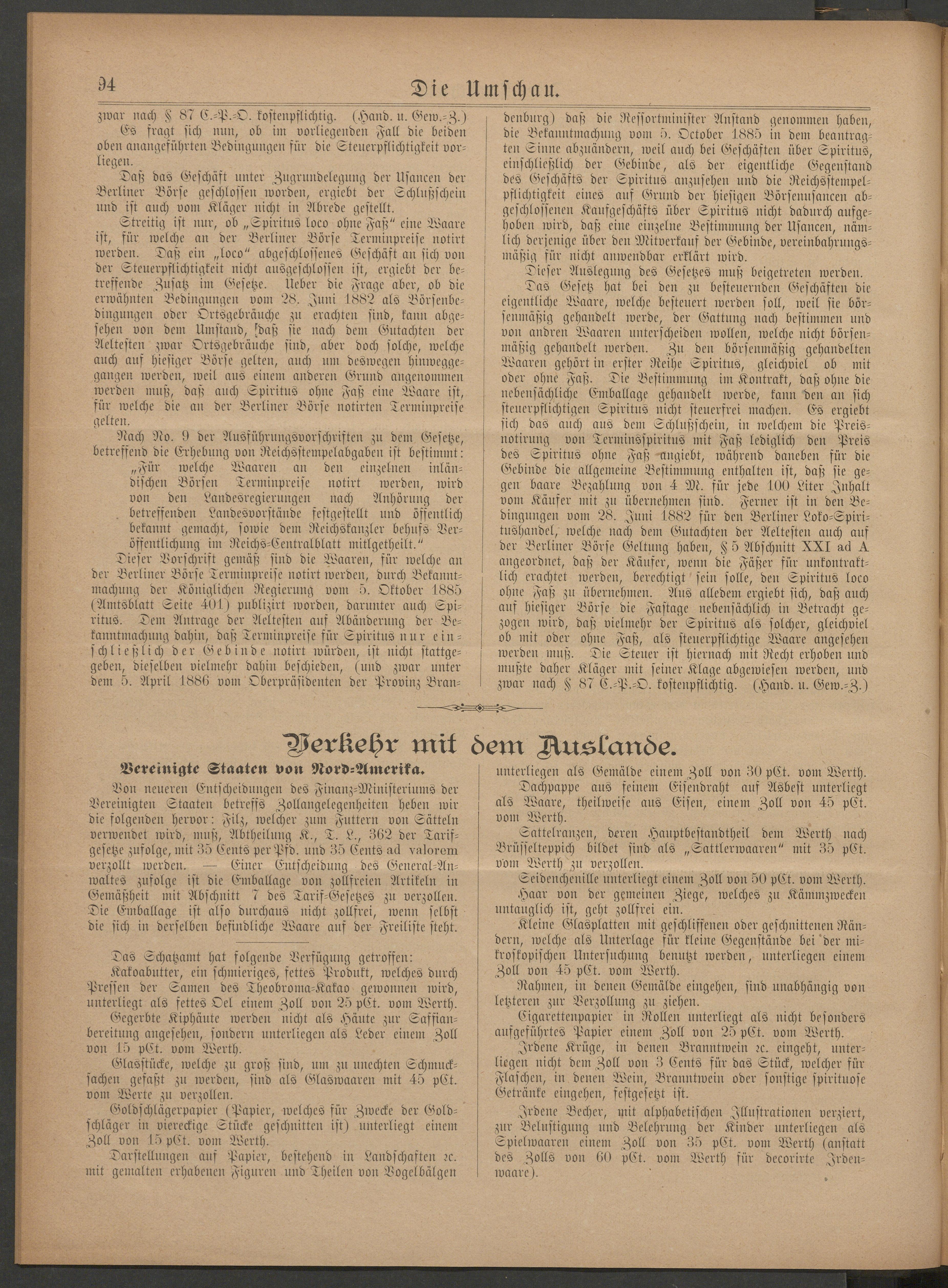 Die Umschau auf dem Gebiete des Zoll- und Steuerwesens
