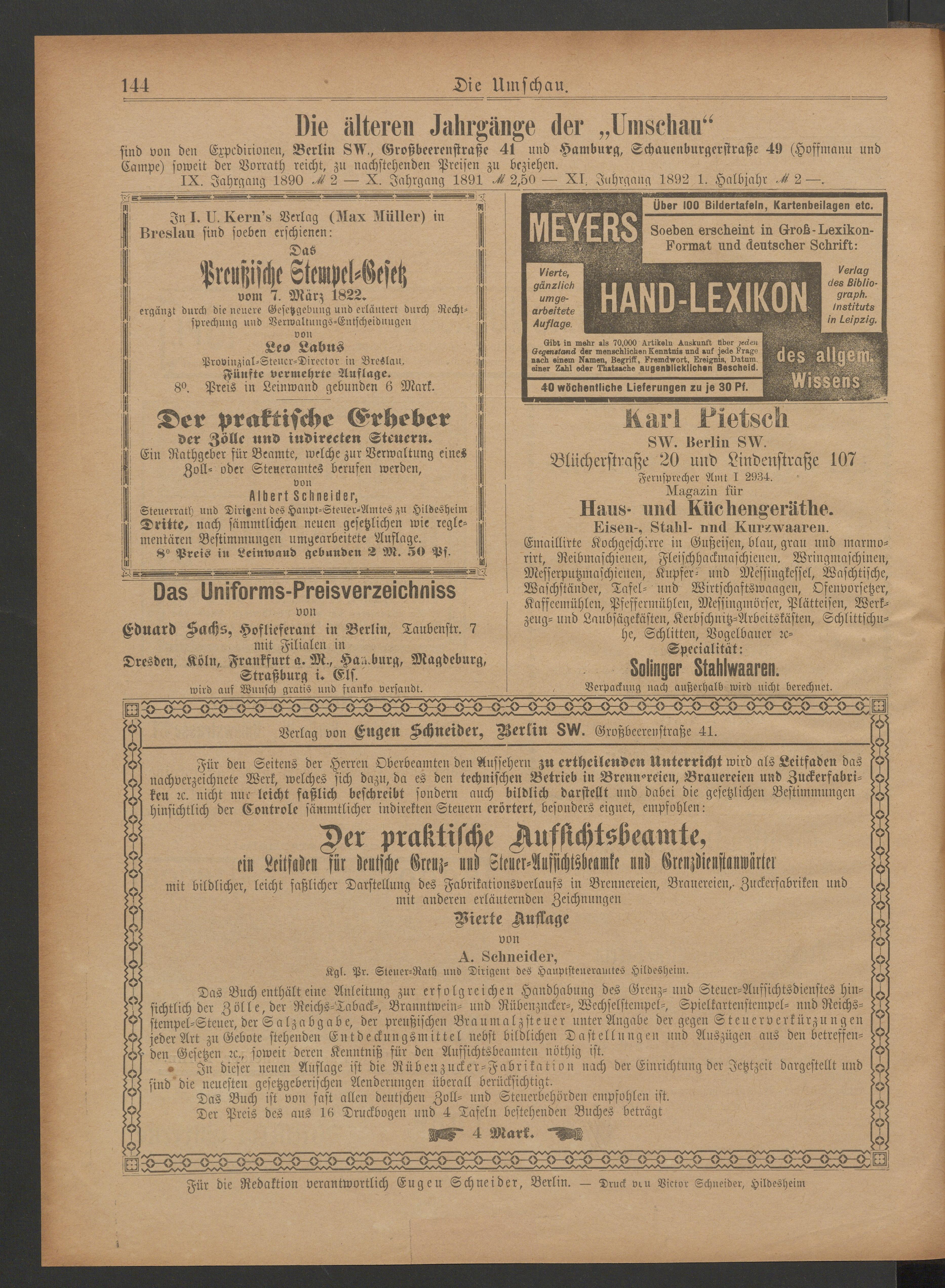 - [Ausgabe/Heft] Nr. 1. Januar 1892. [1]