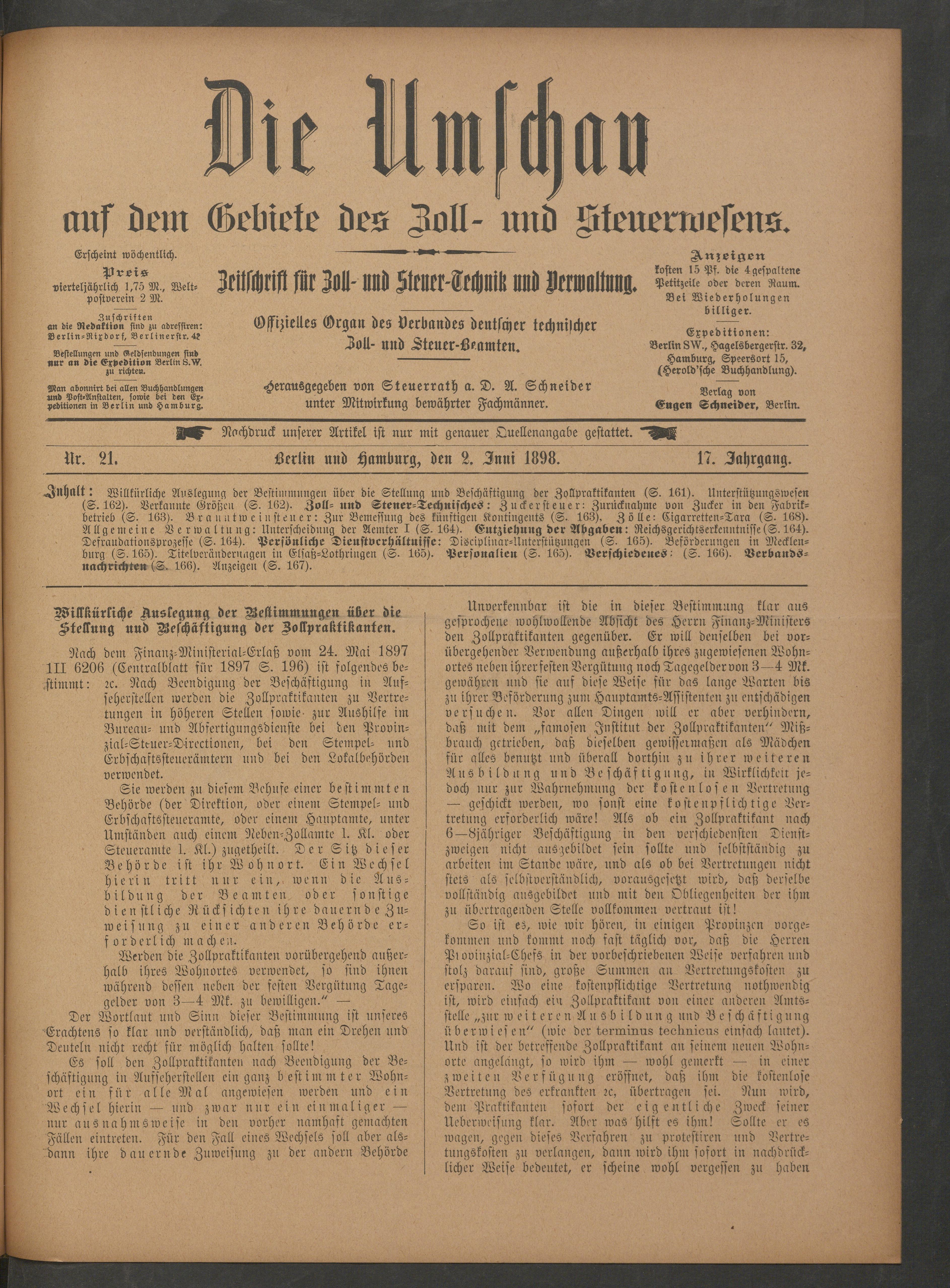 - [Inhaltsverzeichnis] Inhalt des XVII. Jahrgangs 1898.