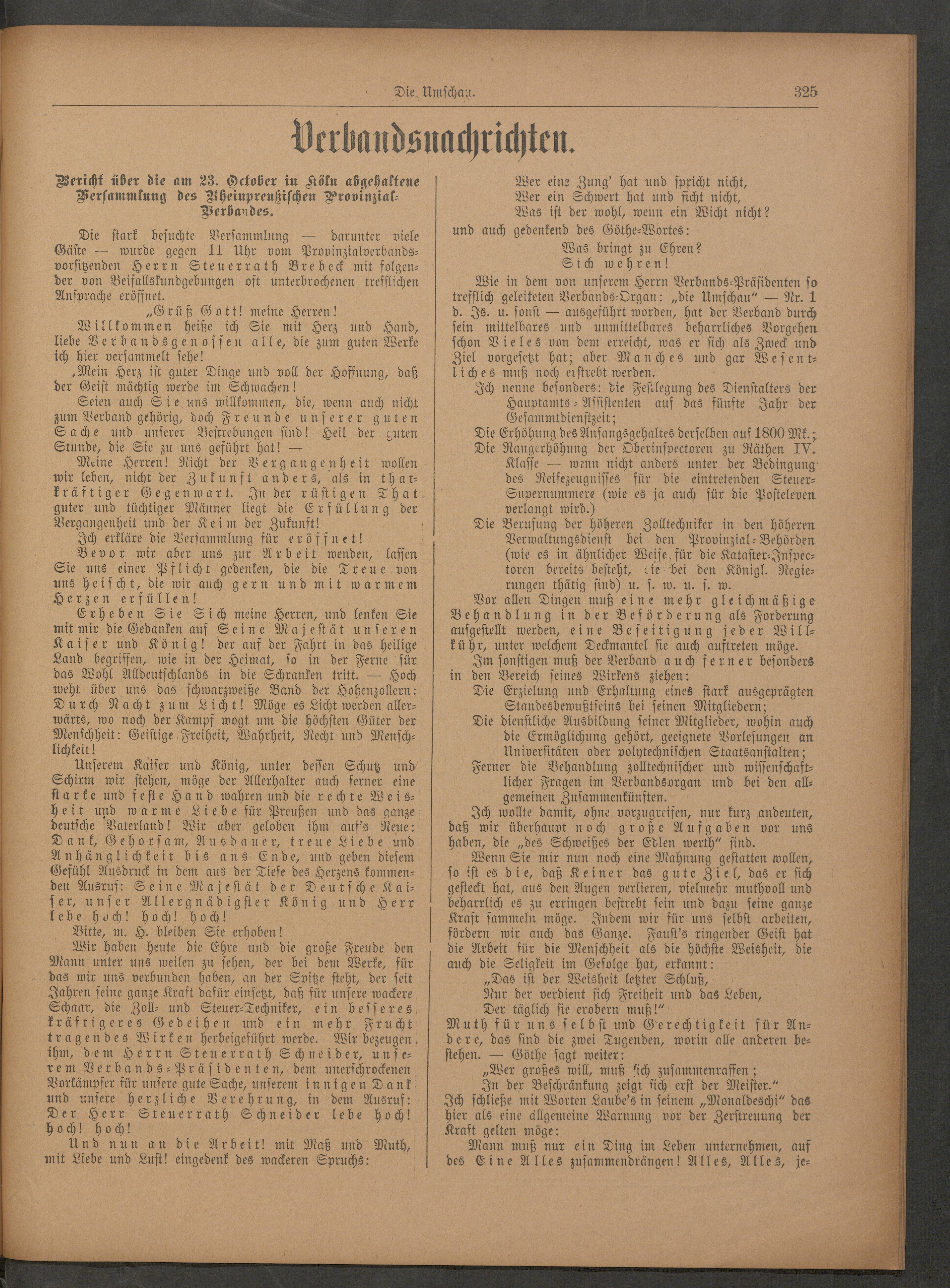 Die Umschau auf dem Gebiete des Zoll- und Steuerwesens
