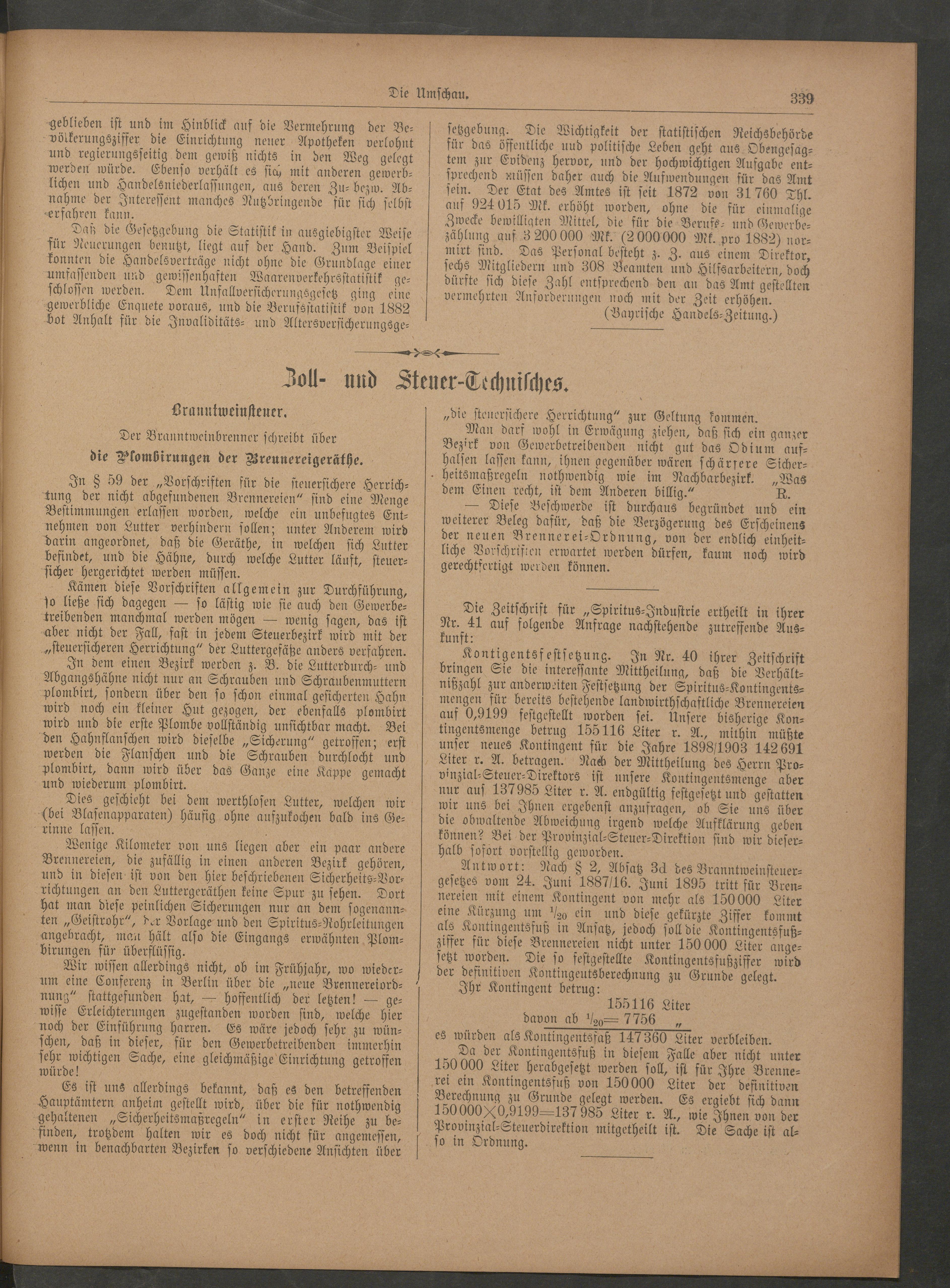 Die Umschau auf dem Gebiete des Zoll- und Steuerwesens