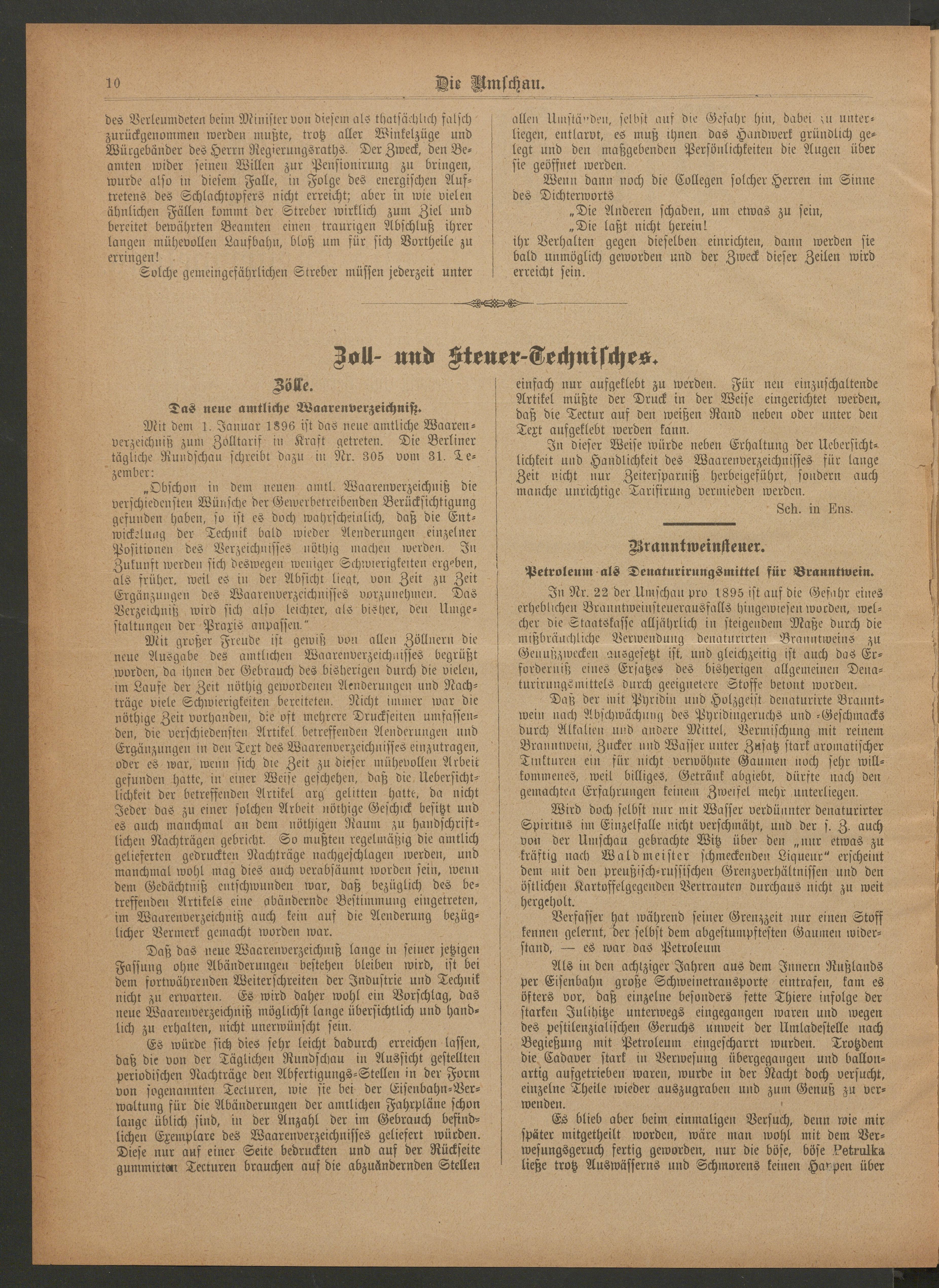 Die Umschau auf dem Gebiete des Zoll- und Steuerwesens