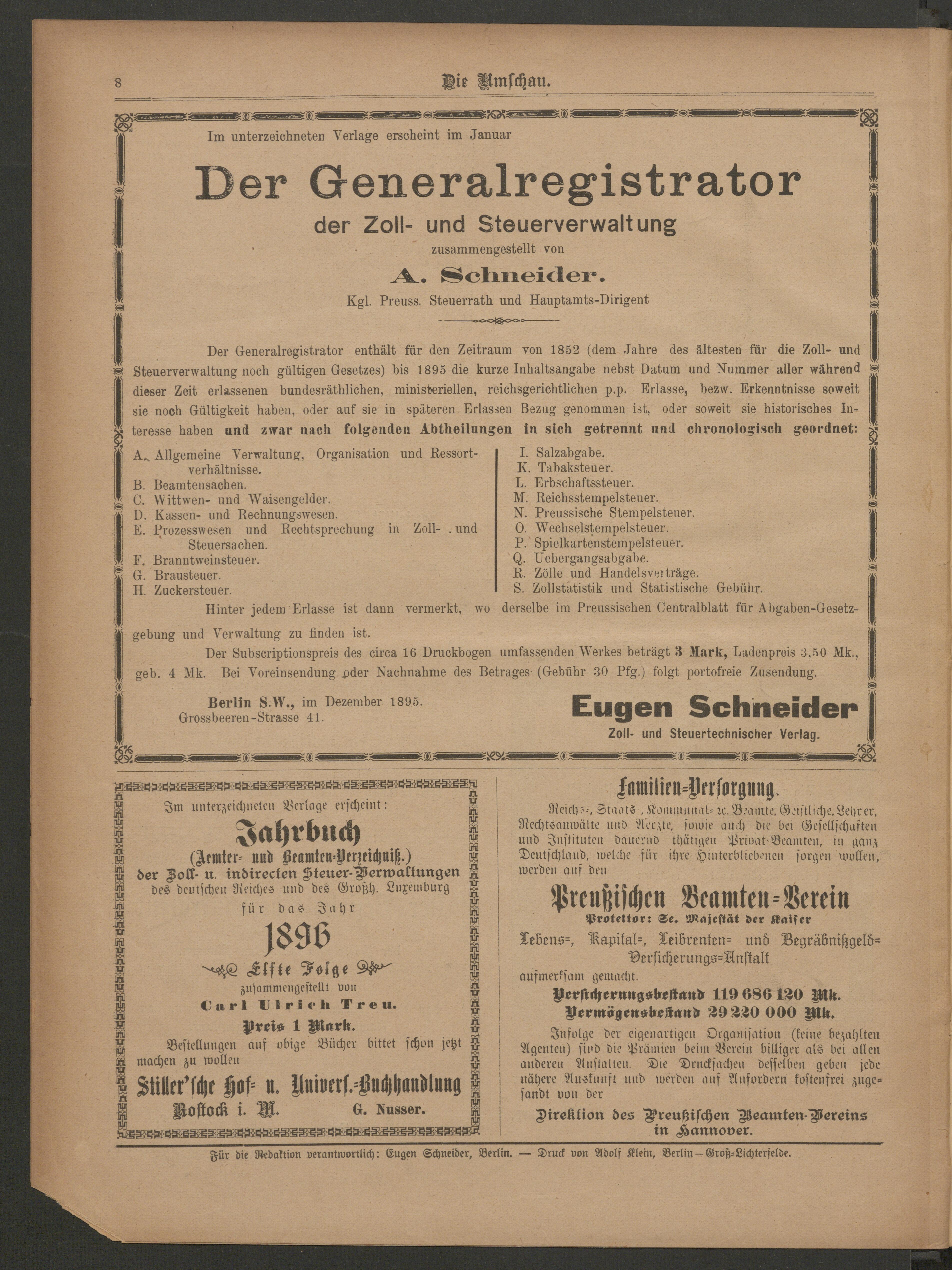 - [Ausgabe/Heft] Nr. 1. Januar 1896. [1]