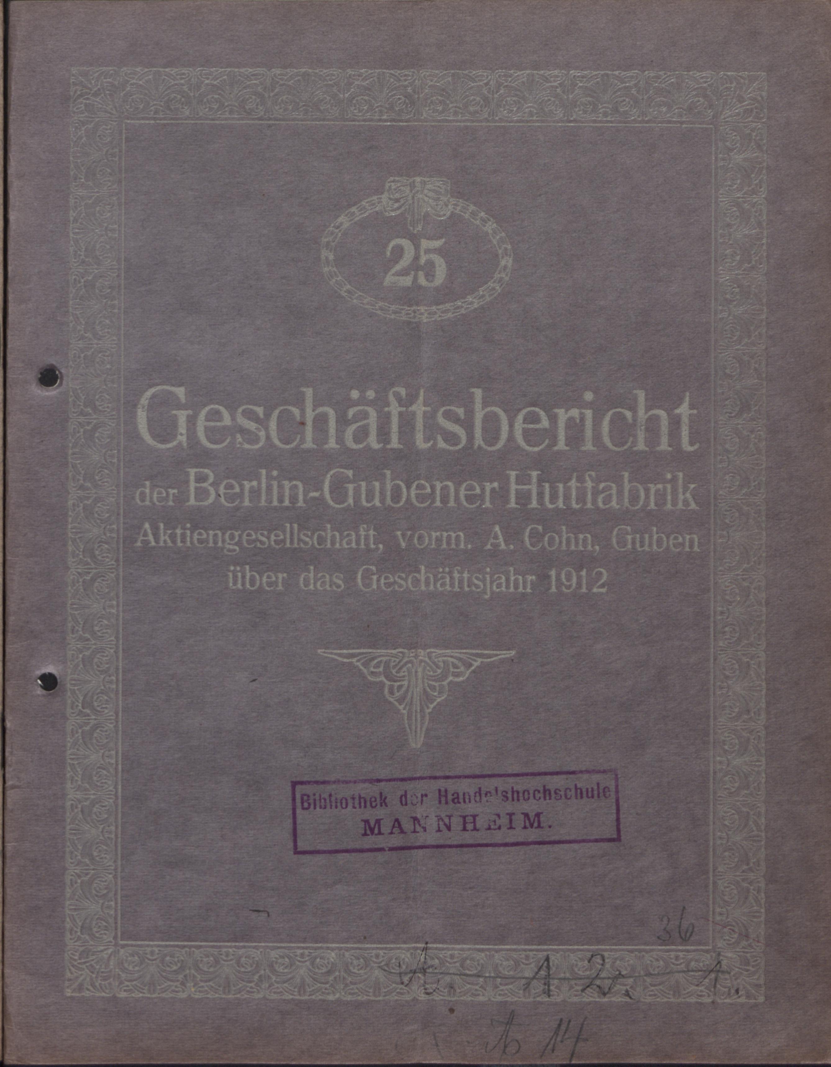 - Geschäftsbericht der Berlin-Gubener Hutfabrik-Aktiengesellschaft, Vormals A. Cohn