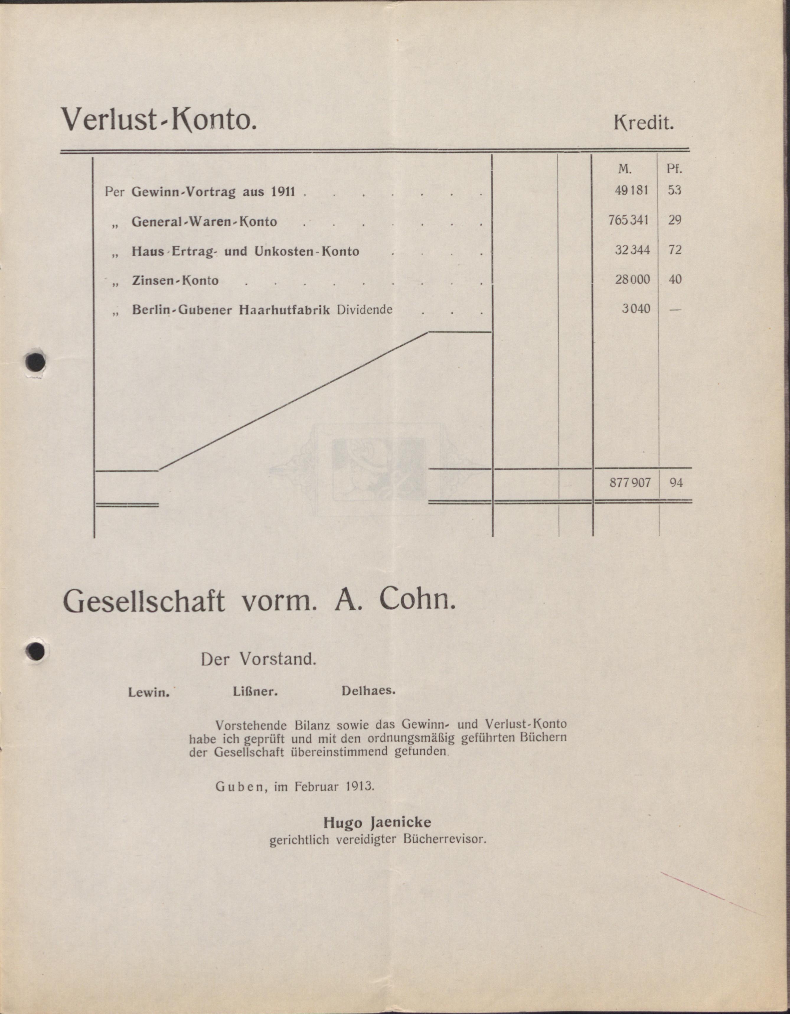 - Geschäftsbericht der Berlin-Gubener Hutfabrik-Aktiengesellschaft, Vormals A. Cohn