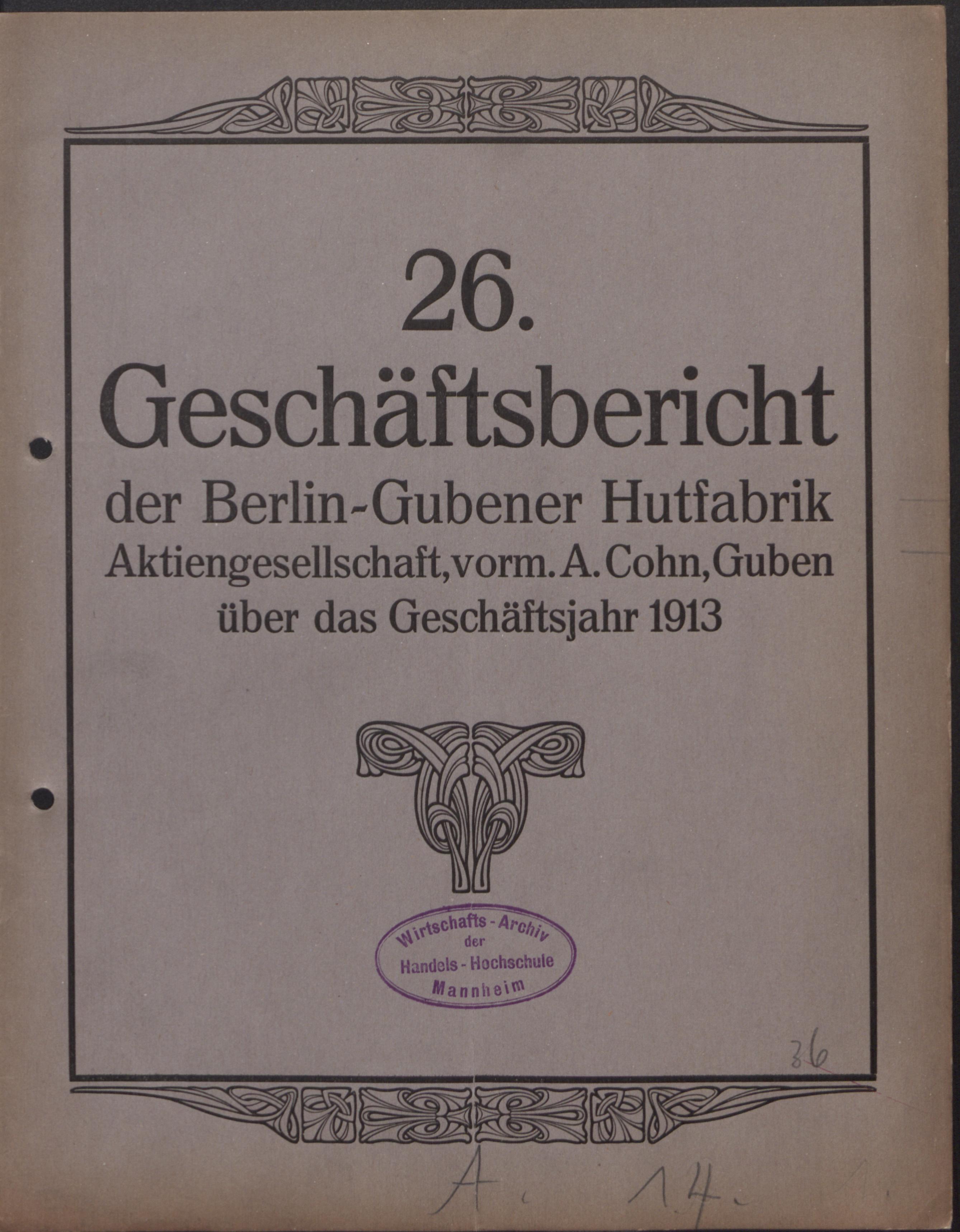 - Geschäftsbericht der Berlin-Gubener Hutfabrik-Aktiengesellschaft, Vormals A. Cohn